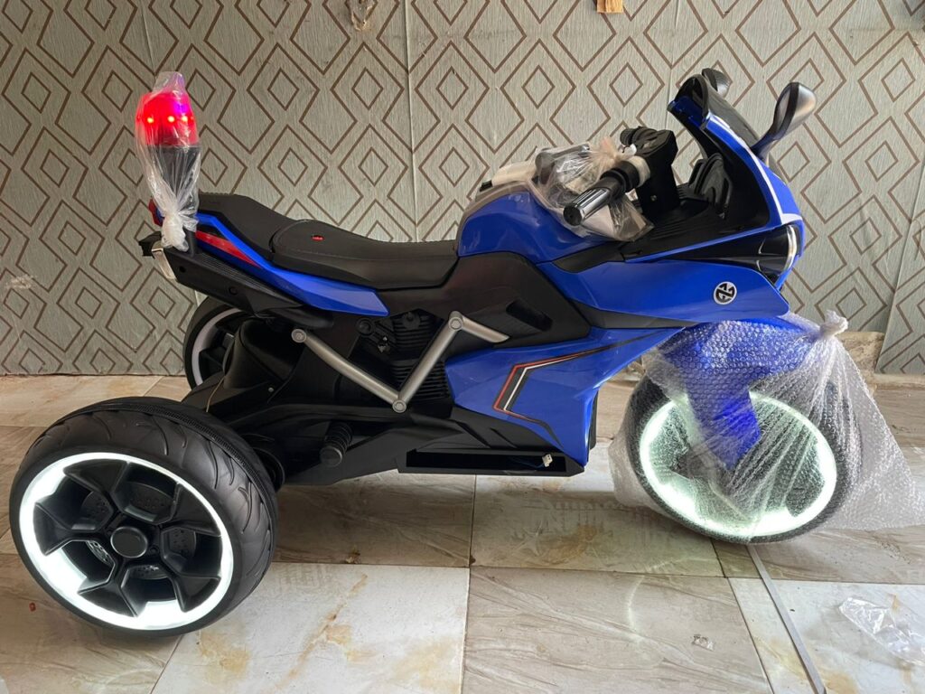 It can Run Up to Speed of 6km/hr Age: Ideal for Kids of Age 1 to 10 Years Safe and DurableRide on Bike With Charger and Assembly Manual Instruction (Battery Is Contained in the Product) Kid Loves the Fun of Riding a Motorcycle by Pushing Start Button With Hand Accelerator and Foot Brake A lovely superbike for your Child.